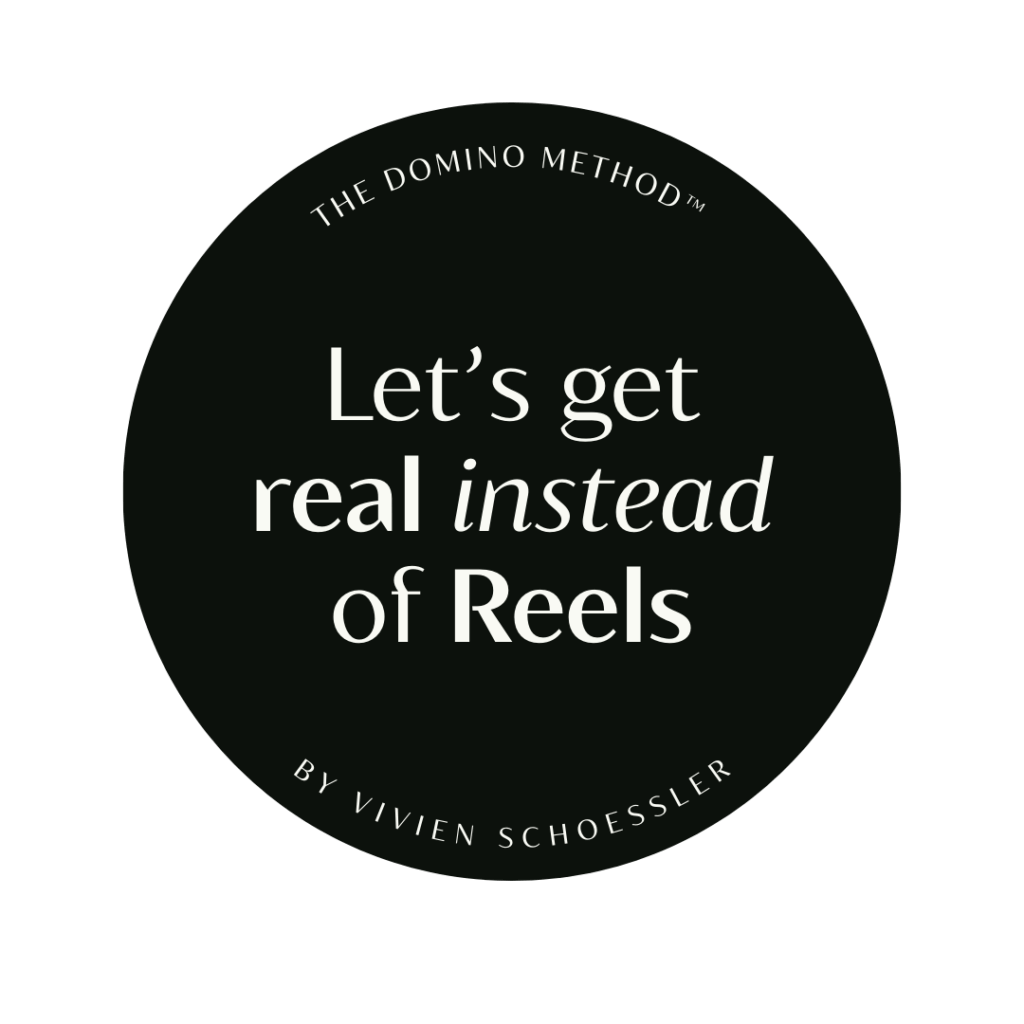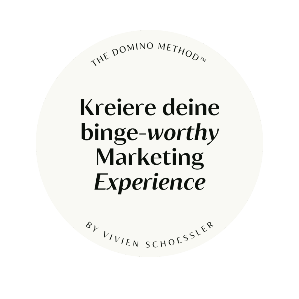 Das gibt dir The Domino Method™: Einen Weg, wie die ikonischsten Marken der Welt zu vermarkten – ohne Tanzen, Trauma-Dumping oder ständige Selbstdarstellung.